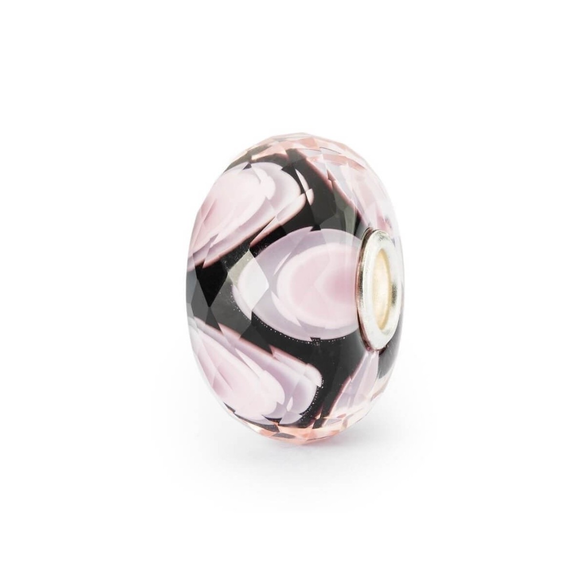 Beads in vetro sfaccettato di colore rosa e nero con rivetto in argento.