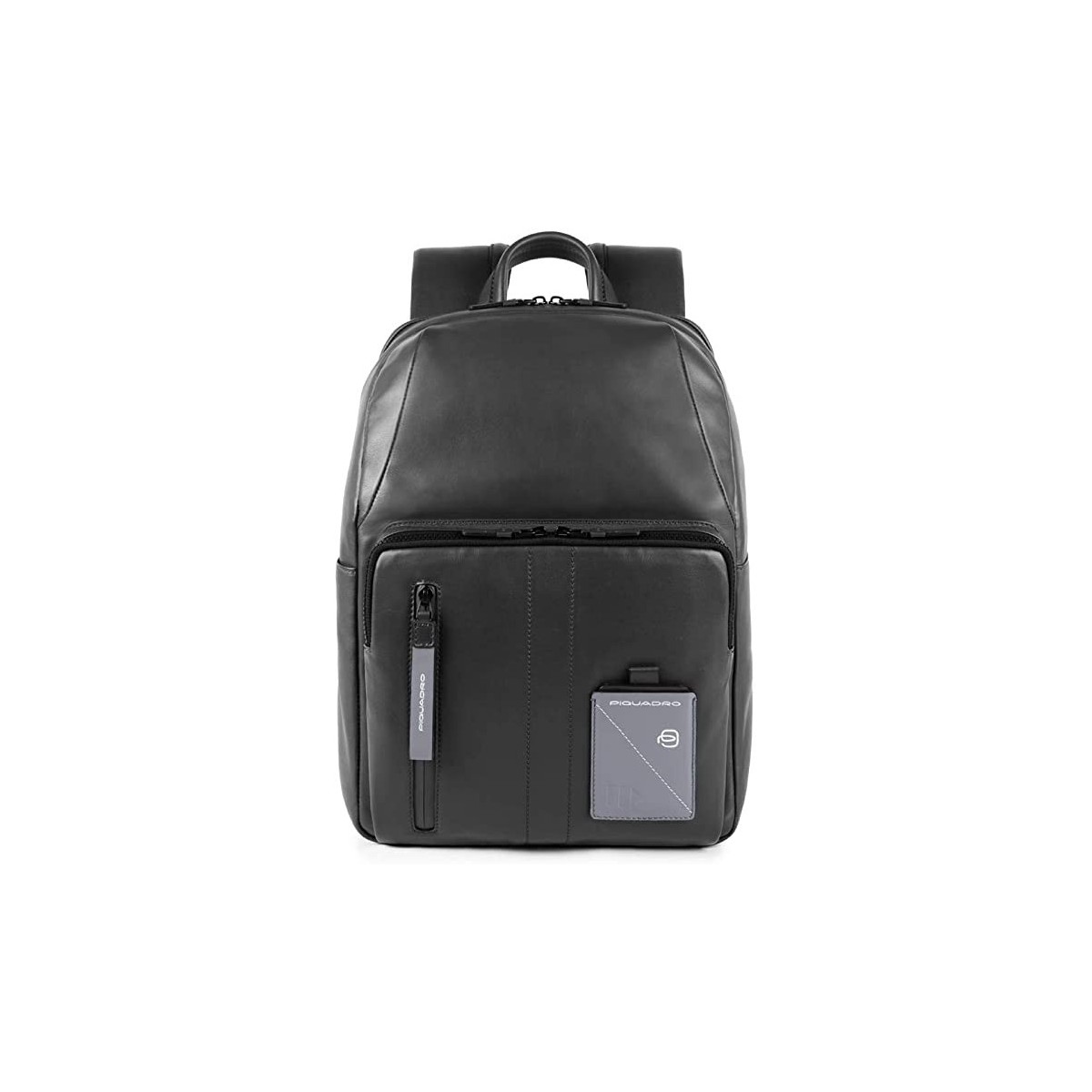 Zainetto Piquadro in pelle Explorer, porta notebook da 14,00", Porta iPad®Air-iPad Pro 9.7/iPad 11, portachiavi, portapenne, porta bottiglia, porta oggetti. Dotato di sistema d'aggancio al trolley.