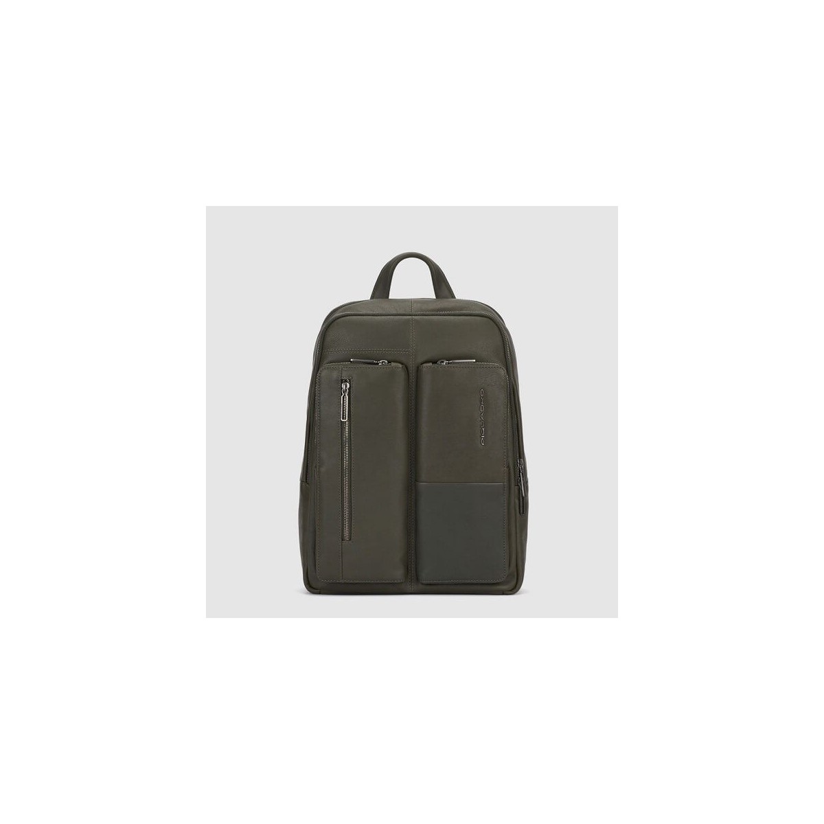 Zaino in pelle verde con tasche frontali Piquadro linea Ronnie