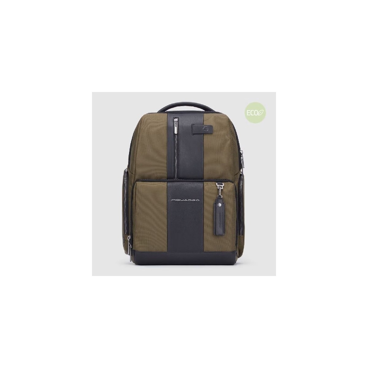 Zaino Piquadro linea Brief 2 grande in tessuto verde militare.