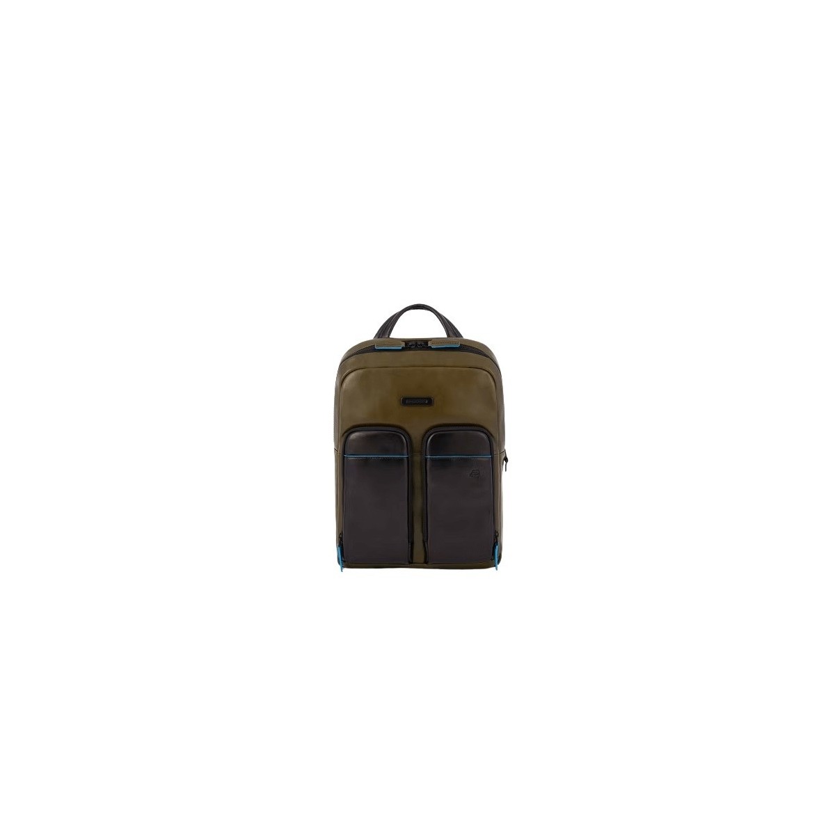 Zaino Unisex Piquadro della collezione B2V realizzato in vera pelle bovina dalla grana sottile e morbida al tatto, lavorata lucida, di colore verde e nero con piccoli inserti di colore celeste posti a contrasto. Lo zaino è caratterizzato da un solo comparto al cui interno ritroviamo due tasche imbottite porta Pc Laptop e porta Ipad e tasche multifunzionali; esternamente ritroviamo quattro tasche anteriori ed una posteriore con protezione RFD. Gli spallacci sono regolabili ed ergonomici per un migliore comfort.